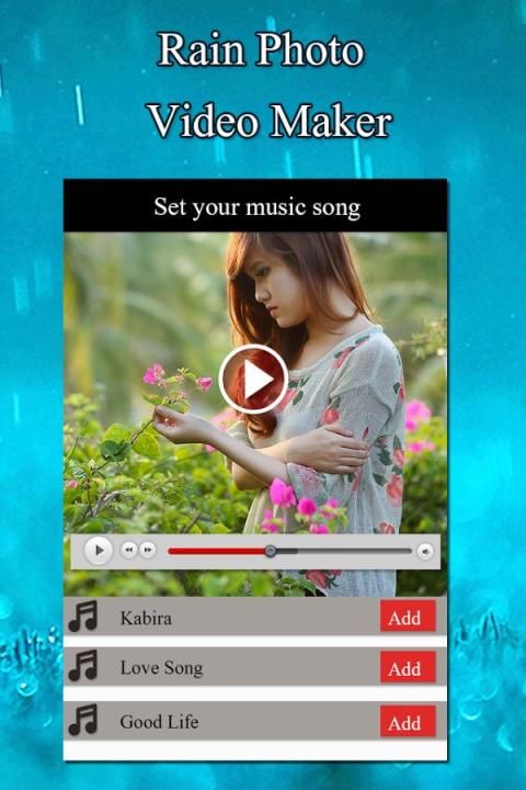 Rainy Foto Video Music Maker adalah sederhana aplikasi antarmuka pengguna untuk membuat video hujan.