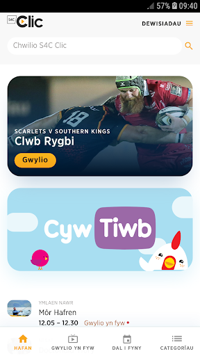 - Tonton program Cyw, layanan pra-sekolah, langsung permintaan.