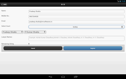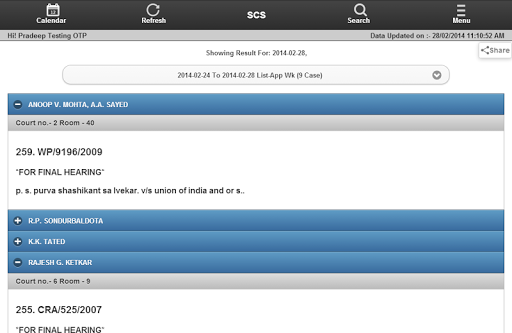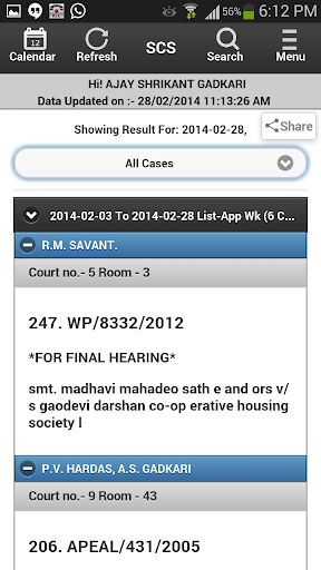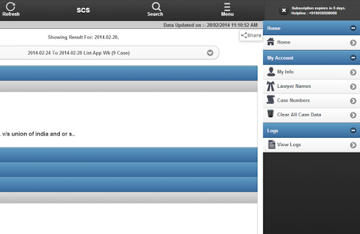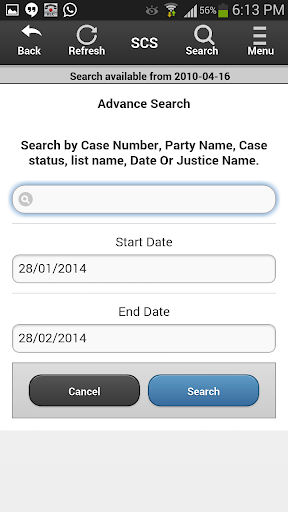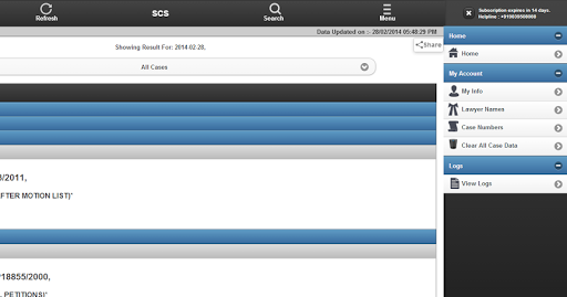 SCS adalah singkatan dari Layanan Distist Singkat.Ini adalah perangkat lunak revolusioner, yang dirancang untuk memfasilitasi proses pengiriman informasi Causelist untuk advokat yang dipraktikkan di Pengadilan Tinggi India.Daftar harian, mingguan, bulanan, tambahan, Causelist Anda akan tersedia setiap hari tepat di layar ponsel Anda.Ketika daftar baru ditampilkan di situs web Pengadilan Tinggi atau ketika kasus Anda diperbarui, aplikasi akan memberi tahu Anda.