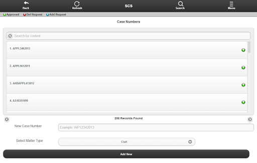 - melacak kasus dengan nama pengacara atau nomor kasus