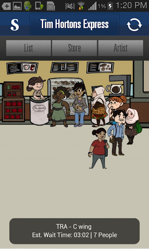Periksa berapa banyak orang yang ada di setiap kedai kopi. Aplikasi unik ini menampilkan gambar kartun real-time dari line-up di setiap kedai kopi. Bagian depan dan karakter toko ditarik oleh lulusan Sheridan. Lihat informasi tentang setiap kedai kopi seperti jam toko serta informasi tentang setiap artis. Klik tombol Refresh untuk memperbarui jumlah baris dan mencari karakter untuk berubah secara dinamis. Bisakah Anda menemukan beruang bruin?