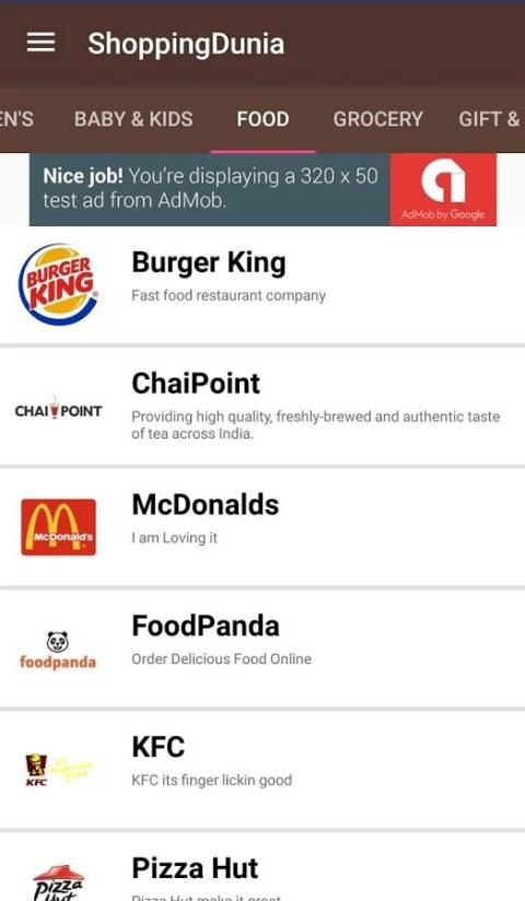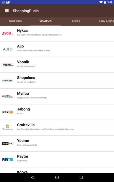 Belanja Dunia fitur atas merek seperti Amazon, Flipkart, Paytm, Snapdeals, Myntra, Jabong, Yepme, Ebay, Homeshop18, Purplle, Nykaa, Ajio, Voonk, PrettySecrets, Firstcry, Babyoye, KFC, McDonalds dan banyak lagi.