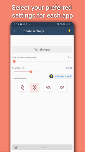Atur Pengaturan Gulir Otomatis untuk Aplikasi Individual: Situs Anda dapat memilih Aplikasi pilihan Anda diinstal pada perangkat Anda dan atur kecepatan dan arah untuk aplikasi tertentu.