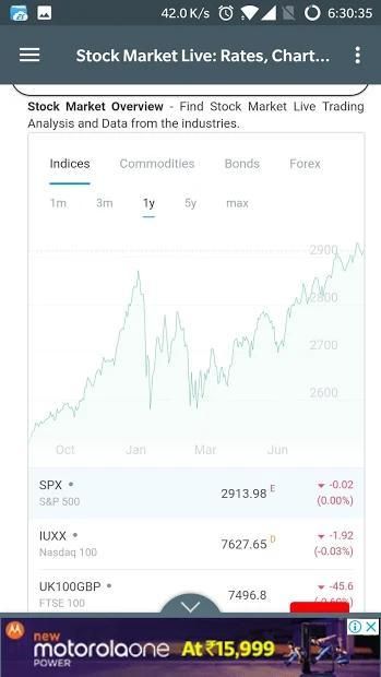 - Tampilan stok mendetail (harga terbuka, harga penutupan, harga tinggi / rendah, harga saat ini, persentase naik atau turun, volume perdagangan saham, kisaran harga 52 minggu, keuangan utama, dll.)