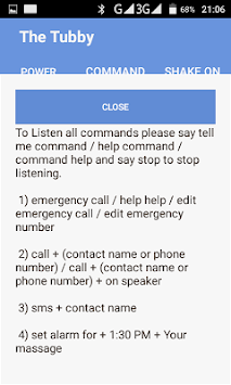 the person driving car can also use the app.you don't need to touch phone screen. app is very easy to use just shake your phone, the app became ready to listen your voice . you can use the tubby for making call, send massage , location search, navigation ,playing song, etc. it consume very less battery. it consume only 10-14% battery per hour. app continue listen to your voice and respond to specific command only. you can enable or disable shake detection.when you are driving a car you can use the tubby for playing media like play song, play specific song name , next song, previous song, play ,forward song to 5 track, pause, stop ,etc.
