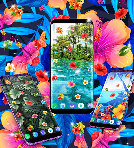 Pilih dari latar belakang dengan kembang sepatu merah, bunga plumeria kuning dan elemen lainnya, Anda dapat menambahkan animasi dengan bunga merah, kuning atau biru yang indah.