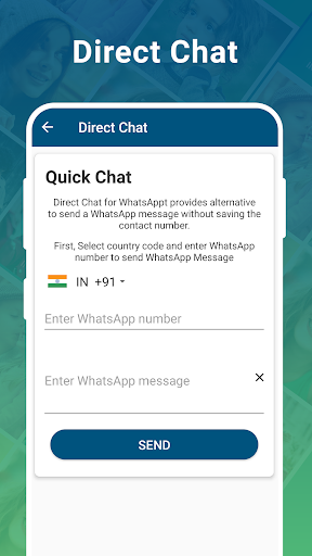 Obrolan langsung untuk WhatsApp didasarkan pada API resmi Open WhatsApp, dan bantu pengguna untuk mengirim pesan langsung kepada seseorang yang tidak ada dalam kontak Anda. Sederhana & aman untuk digunakan.