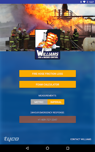 Aplikasi menyediakan alat komando pendidikan, pra-perencanaan dan insiden untuk personel manajemen darurat untuk menghitung persyaratan pemadam kebakaran real-time (kebutuhan konsentrat busa & ukuran kerugian gesekan selang) untuk terminal penyimpanan minyak mentah dan peternakan tank.Menghubungkan pengguna langsung ke Tim Tanggap Darurat Williams.