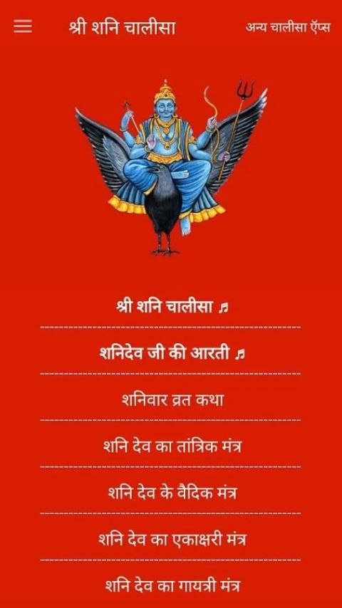 Shani Dev ji Chalisa App - shani dev ji arti, Chalisa, pujavidhi, varatkath dan berbagai mantra