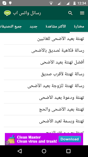 أو رسائل الواتس اب، تطبيق رسائل الواتسب يقوم بتصنيف الرسائل حسب المناسبات المختلفة مثل رسائل التهنئه و رسائل الحب والغرام و رسائل المعايدات وأعياد الميلاد وغيرها من التصنيفات مثل الرسائل الاسلامية