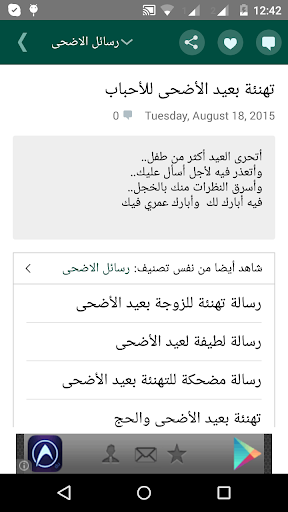 و رسائل معايدات و رسائل رمضان و رسائل عيد الاضحى وعيد الفطر وغيرها من التصنيفات المتنوعة ، حمل الان التطبيق واحصل على كل ما هو جديد.