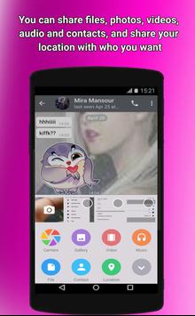 - You can share files, photos, videos, audio, contacts, and share your location with who you want