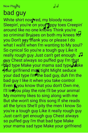 Music player with Instant Lyrics - Now fetch lyrics as you play music on your android device all the music of billie ellish!