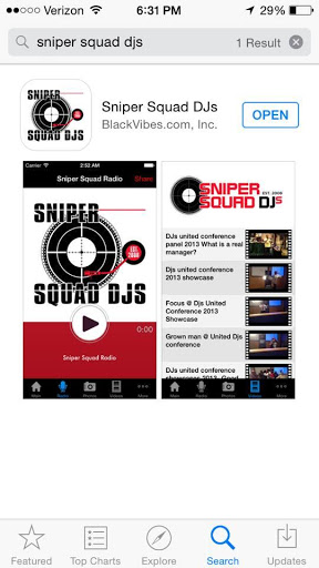 Ini adalah aplikasi untuk sniper skuad DJ yang dimiliki oleh Bonita "Adorable P" Payton yang dibuat pada tahun 2008. Sniper Squad DJ's adalah perusahaan pengembangan karir untuk DJ di seluruh dunia.Ini juga merupakan perusahaan manajemen untuk artis dan DJ.Sniper Squad DJ's juga merupakan perusahaan pemasaran dan promosi layanan penuh.Sniper Squad DJ saat ini memiliki tiga stasiun radio Sniper Squad Radio, Sniper Squad Gospel dan Sniper Squad Jamz.Sniper Squad DJ's adalah perusahaan internasional dengan DJ di 5 negara.