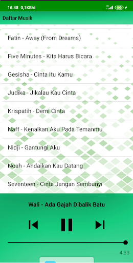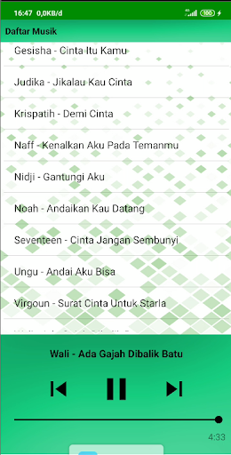 ini lah lagu lagu yang bisa di dengar di aplikasi ini :