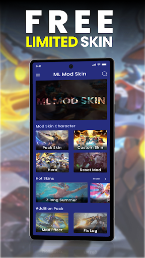 - Mod kulit epik, kulit legenda, dan mod lebih banyak item untuk MLBB