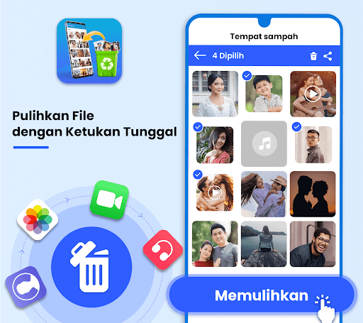 Aplikasi pemulihan foto untuk memulihkan dan Mengembalikan Video. Pemulihan video terhapus lama. Deleted photo recovery app and deleted video recovery app and deleted data recovery app. Wa recovery dan pemulihan sampah.