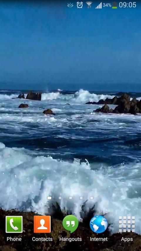Ini adalah HD Live Wallpaper dengan gelombang laut biru besar yang mengalir bolak-balik kanan pada layar Anda dengan gelombang laut yang menakjubkan mengalir di tempat yang eksotis di pantai eksotis yang indah.