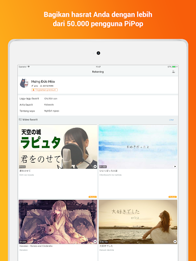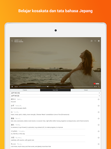 Anda juga dapat belajar bahasa Jepang melalui Lagu-lagu di PiPop. Belajar kosakata dan tata bahasa Jepang, latihan mendengarkan bahasa Jepang melalui lagu-lagu.