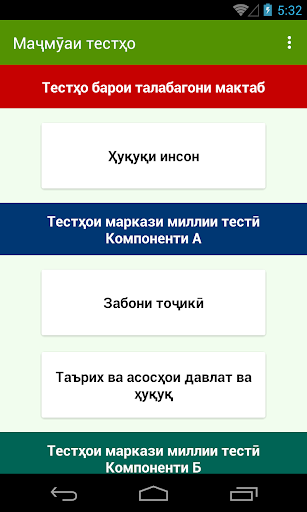Маҷмӯаи тестҳо - барнома барои тафтиши дониш мебошад, ки онро дилхоҳ шахс метавонад комилан ройгон истифода барад. Айни замон дар барнома тестҳо оиди ҳуқуқи инсон ва таърих барои мактаббачагон ва тестҳо аз аксарият фанҳои (тестҳои ММТ) барои довталабон ҷойгир карда шудаанд.