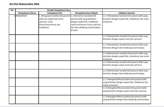 Kisi-Kisi UKG Matematika SMA