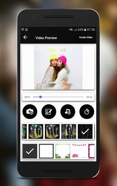 Foto untuk video dengan musik dengan perangkat lunak musik melalui Anda untuk membuat tayangan slide foto dari ponsel Anda, dalam hitungan detik, dengan waktu slider, bingkai dan filter, tekstur Tambahkan efek baru dan label yang berbeda.