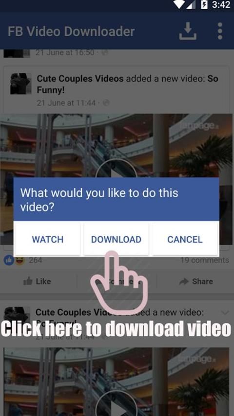 G Unduh video dari feed berita Anda, kelompok atau halaman