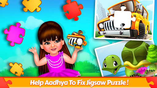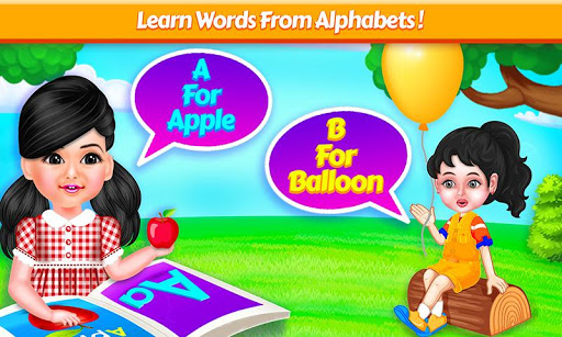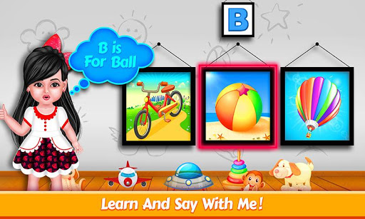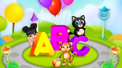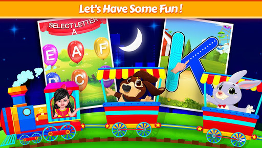 naik kereta dengan bayi aadhya untuk mengunjungi dunia anak-anak abc pendidikan! pilih permainan dari 10 permainan alfabet yang berbeda. ini termasuk:
