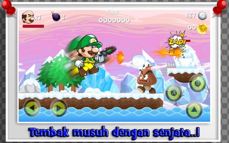 Kamu hanya perlu menyentuh tombol untuk mengontrol karakter mario lego, agar bisa memukul, melompat, menembak, serta gerakan lucu lainnya.