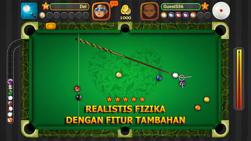 Cukup tekan “Main” dan mulailah pertandingan pertamamu melawan pemain-pemain dari seluruh belahan dunia, dengan 8 biaya masuk berbeda dengan hadiah yang berbeda – hadiah bermula dari 100 sehingga 1 000 000 koin. Terus bermain untuk mendapatkan tingkat baru, naikkan rankingmu, dapatkan banyak bonus mulai dari 100 koin dan dapatkan mahkotamu untuk ranking yang lebih tinggi! Baik kamu pemain profesional maupun pemula, kegembiraan terjamin ketika bermain permainan Billiards Pool Arena 8 bola biliar yang menantang ini! Unduh sekarang dan cobalah!
