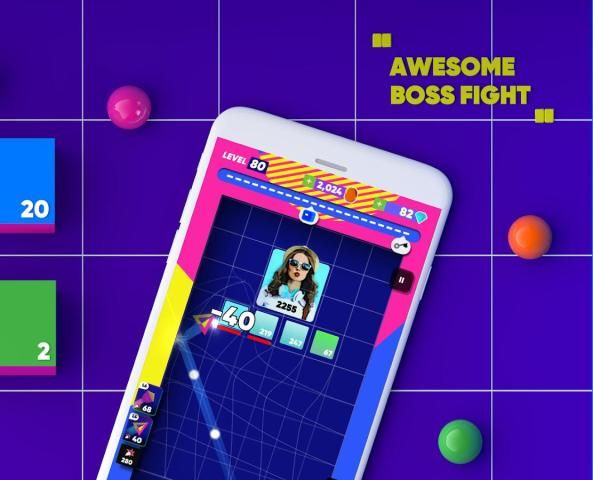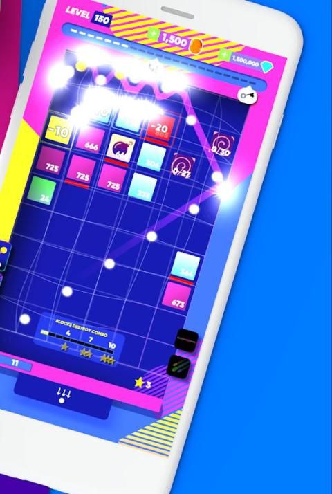 Bertujuan melalui menggesekkan jari Anda ke bawah, kiri atau kanan, dan melemparkan bola untuk menghancurkan batu bata