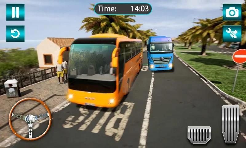 Heavy Bus Simulator 3D - bus driving in india is 3D graphic bus driving game with an addictive interior. Firstly, select a nice mobile bus to go on your way. There are many other buses on the bendy road, like minivan. Your mission is sit in a bus sim to drop passengers to their destinations. When there is a traffic jam, press the blinker and horn in case that your bus is damaged. If the missions are incomplete, you can’t get enough coins to upgrade the buses. Twist the steering wheel and give toll timely to police.