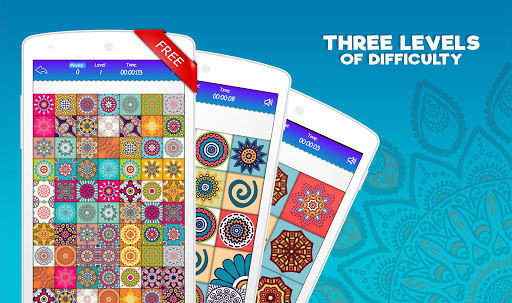 Permainan memori mandala adalah permainan memori klasik yang terdiri dari kartu yang cocok dengan gambar yang sama. Masing-masing dari 10 level berisi grafis mandala yang berbeda sehingga gameplaynya menarik dan tingkat kesulitan meningkat dengan setiap tahap.