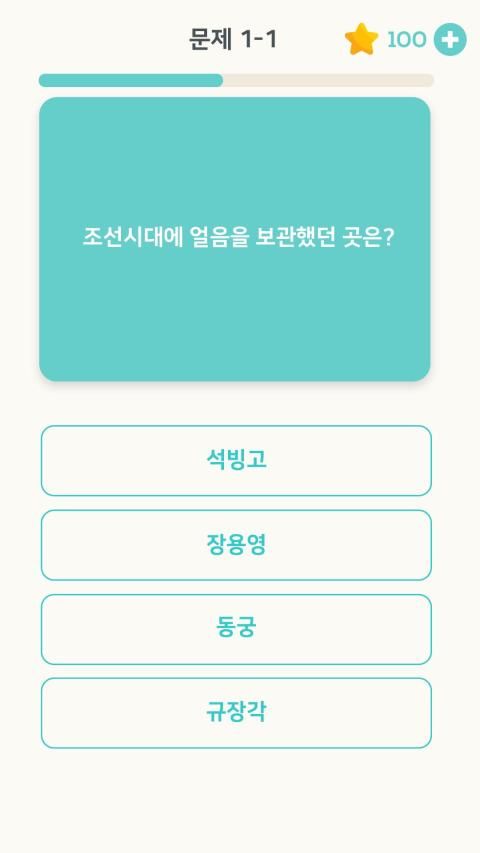 스테이지별로 제공되는 한국사 퀴즈를 풀어보세요!