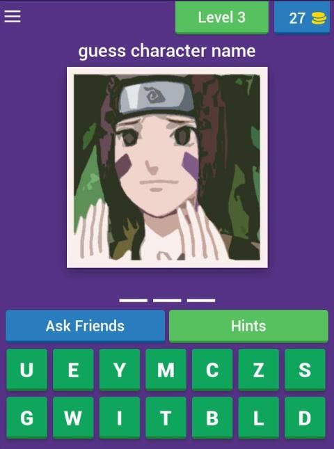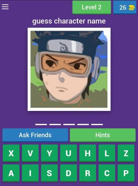 "Naruto menebak karakter" adalah kuis naruto gratis dan menyenangkan permainan kata terinspirasi oleh anime: naruto. yang melibatkan menebak nama karakter terkenal dan ikonik.