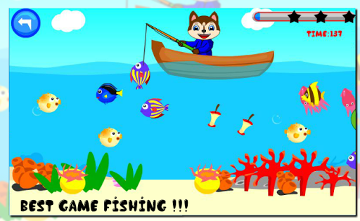 game ini sangat enak dan sangat baik untuk dimainkan karena memiliki gambar yang lucu, suara yang lucu dan animasi yang lucu, kamu cukup memilih ikan apa yang akan di pancing dilautan tapi hati-hati karena banyak rintangan dan tidak semua ikan bisa dipancing, ayo lakukan dengan benar dan bidik ikan yang akan dipancing.