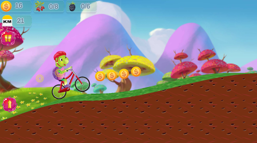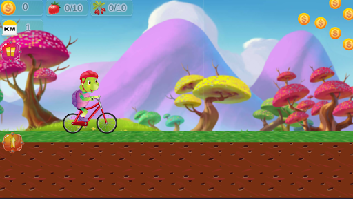 Purple turtle is riding on bicycle in his jungle trip. He is facing different natural and manmade hurdles like stone, pumpkin, fire, wood bundle etc. You can assist turtle to pass these hurdles by tapping on screen to jump over hurdles. You can collect coins, fruits and other gifts during play this adventurous cycle game. Purple Turtle Cycle Game is an endless and addictive game for small age group. This game is light, silly with good high definition graphics like 3d. Download this free game and enjoy winter season. Some permissions are required to play this game, which is mentioned in game play.