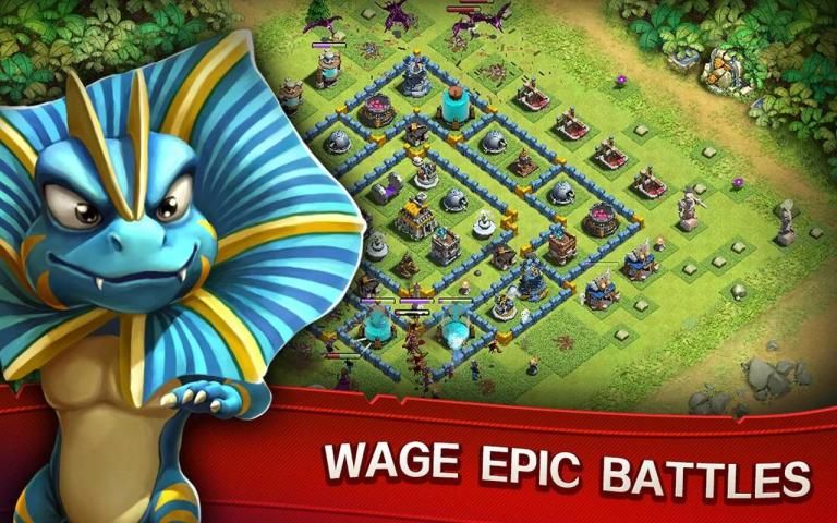 - Membangun desa Anda menjadi benteng tak terkalahkan