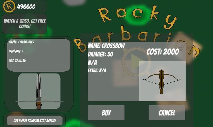 Rocky Barbarian adalah gim bertahan hidup yang memiliki elemen mirip RPG (sistem titik stat) di samping toko, satu ton senjata, dan Anda dapat bermain dengan 2 karakter berbeda.