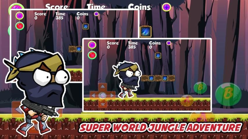 SUPER Dunia Petualangan Hutan adalah permainan petualangan hutan yang Pahlawan Anda bisa melompat, berlari dan menembak musuh.
