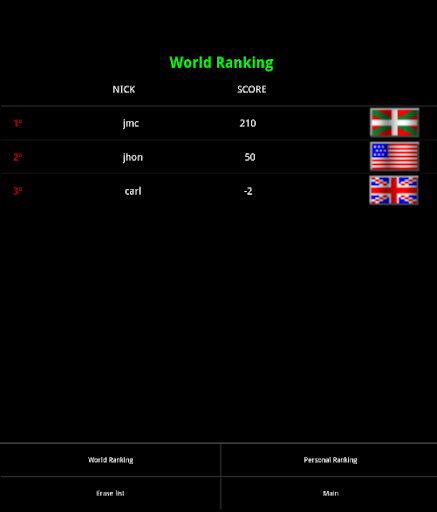 Skor ditampilkan pada peringkat dunia, di mana Anda meletakkan nama panggilan Andadan pilih nama negara Anda.
