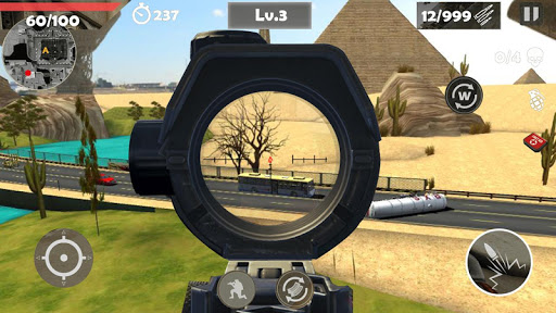 teroris mengemudi kendaraan di kota untuk melarikan diri, Anda sebagai striker pasukan khusus, harus dalam lalu lintas yang sibuk untuk menemukan teroris, menghancurkan mereka.Jangan biarkan mereka melarikan diri.adalah waktu terbaik untuk membuktikan keterampilan sniper Anda.Bertujuan menembak.