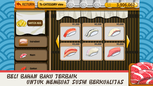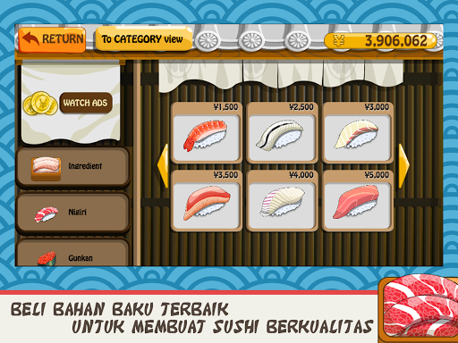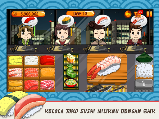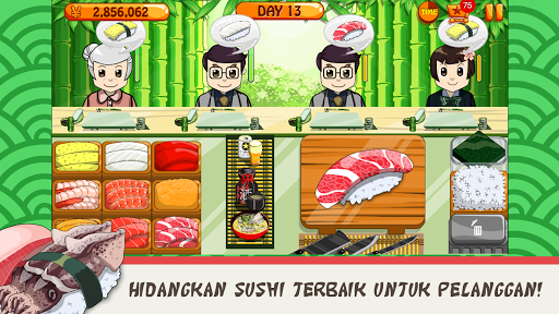 Buat dan sajikan hidangan kepada pelanggan kamu setiap harinya - lalu, habiskan uang kamu untuk berkeliling dunia dan membuka restoran baru. Taklukan setiap negara dan berlomba melawan teman kamu untuk menjadi yang restoran sushi terbaik!