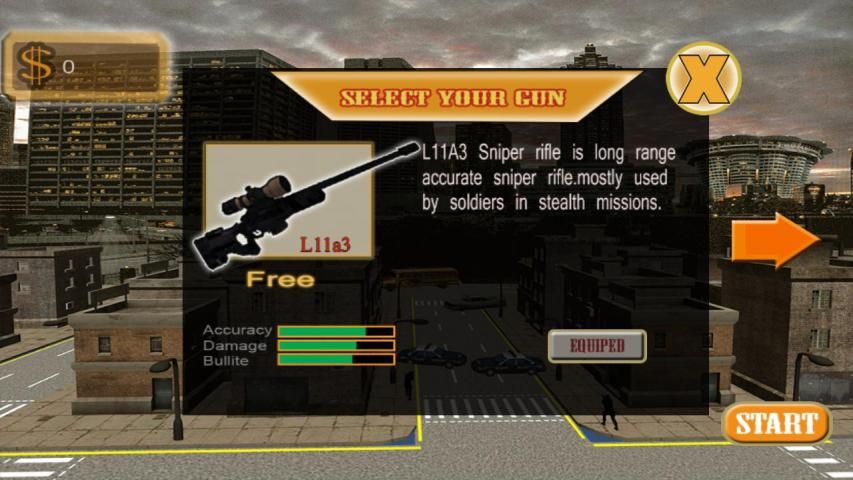 Pemain memiliki pilihan untuk tiga senapan sniper yang berbeda