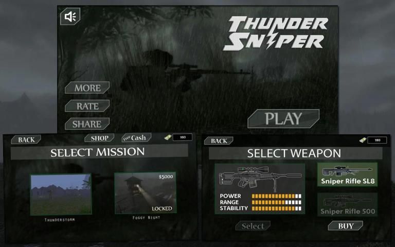 Guntur Sniper memiliki banyak misi yang unik berdasarkan iklim yang berbeda seperti badai, hujan lebat, hujan salju dan banyak lingkungan menarik lainnya.