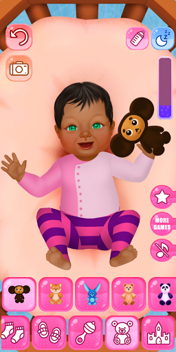 Ini adalah permainan bayi animasi baru untuk anak perempuan. Bayi kecil Anda akan menangis, tersenyum, dan menyentak kakinya! Anda dapat menempatkan anak Anda di kereta dorong, buaian, atau tikar. Segera setelah Anda selesai, buat screenshot dari bayi Anda yang modis! Bagikan dengan teman-teman Anda dan berdandan boneka, yang terlihat seperti teman-teman Anda! Bersenang-senang di game mode bayi kami!