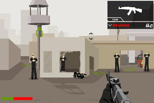 A group of gangsters have occupied a small town and killed innocent people at will.Something must be done now! You are a SWAT member and your troop is sent there to take down the enemies,your objective is to kill the head of gangsters.There are four weapons to choose,including a sniper,you can only carry two of them with you.Choose the weapon carefully and crush your enemies.Old soldiers never die!Try your best and be an excellent SWAT member,and top Sniper!