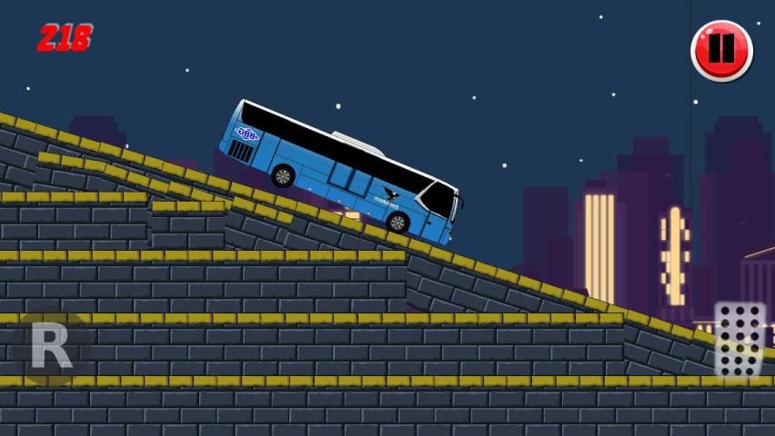 dalam simulasi game bus ini, anda akan melewati banyak lompatan dan turunan hingga batu yang jatuh dari atas. jika anda tidak konsentrasi maka bus yang anda kendarai akan hancur dan permainan akan mulai dari pertama lagi. anda akan semakin semangat bermian game simulasi ini karena akan ditemani musik yang keren.