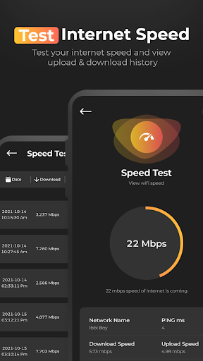 Wifi Analyzer also allows you to check the download and upload speed of your connected wifi network quickly and accurately. Along with measuring the wifi speed, wifi analyzer also displays the additional information of the connected wifi network i.e., IP Address, ping, network name etc.