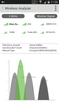 The analyzer feature can help you find the best channel to use, and compare the signal strength of each SSID.